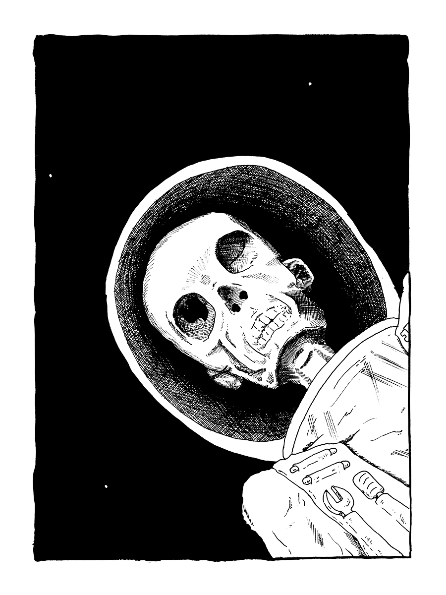 A suit, adrift among the stars. For how long has it been floating? This mini comic has a color cover and black and white interior pages. it is 5x8 inches. The comics is 12 pages.